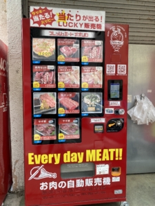 ちなみに今日は、ソロモンと一緒に那覇市内にある「国際通り」に出かけたところ、途中で肉の販売機🍖を見つけました!
