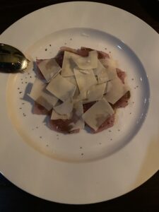 からのマグロのカルパッチョとビーフカツレツ、美味!